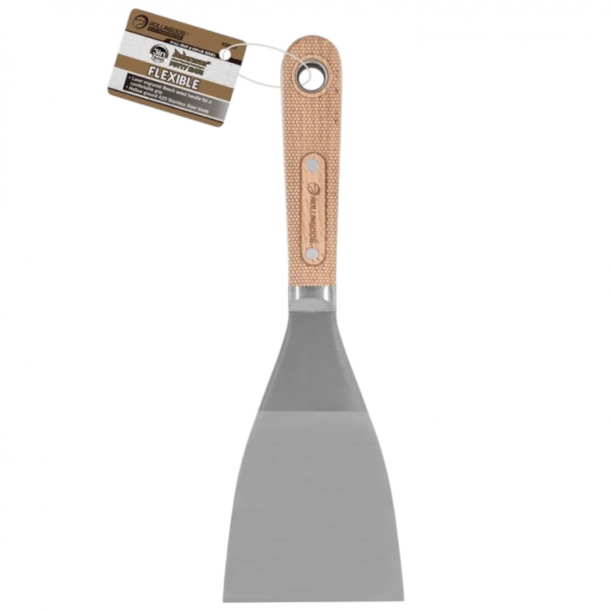 Малярний шпатель Rollingdog DOBERMAN 3" (76мм), серія Elite (50157) — це компактний і зручний інструмент, створений для максимально точного виконання малярних та ремонтних робіт. Його лезо виготовлене з високоякісної нержавіючої сталі 420 з додатковим захисним лаковим покриттям, що гарантує тривалу стійкість до корозії та зносостійкість. Ручка виготовлена з букового дерева з лазерним гравіюванням, що забезпечує комфортний захват та естетичний вигляд. Завдяки гнучкому та міцному лезу шпатель ідеально підходить для обробки стиків, видалення залишків матеріалів та нанесення шпаклівки у важкодоступних місцях.