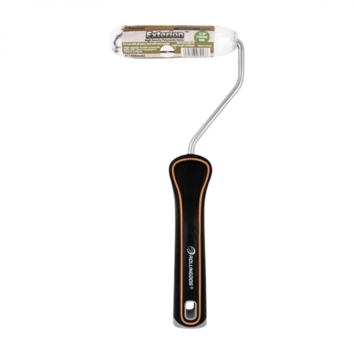 Малярний валик Rollingdog Exterion 100 мм з преміум поліаміду забезпечує високу ефективність при фарбуванні завдяки безворсовому матеріалу, який міцно закріплений на пластиковому сердечнику за допомогою технології термосклеювання. Такий валик ідеально підходить для використання на поверхнях від полу-шерохуватих до шерохуватих. Він дозволяє швидко покривати великі площі, такі як стелі, стіни, підлоги та для застосування техніки бэкроллингу. Володіє високою зносостійкістю і підходить для всіх типів фарб. Ергономічна ручка забезпечує комфорт у роботі, зменшуючи навантаження на руки.